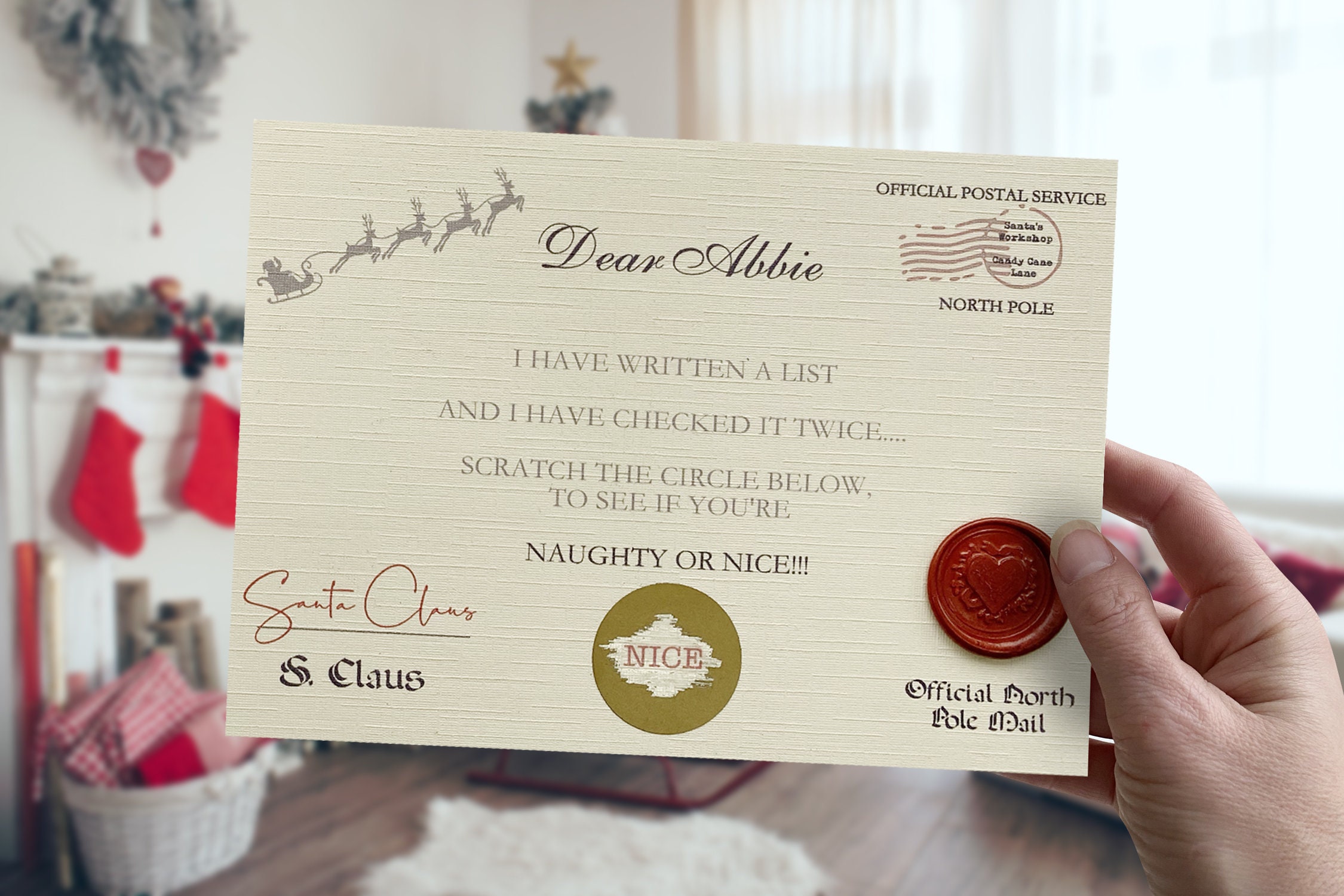 A lovely personalised Scratch Card from Santa to let your child know if they are on the Naughty or Nice List this Christmas. These are also a PERFECT addition to a Christmas Eve Box.