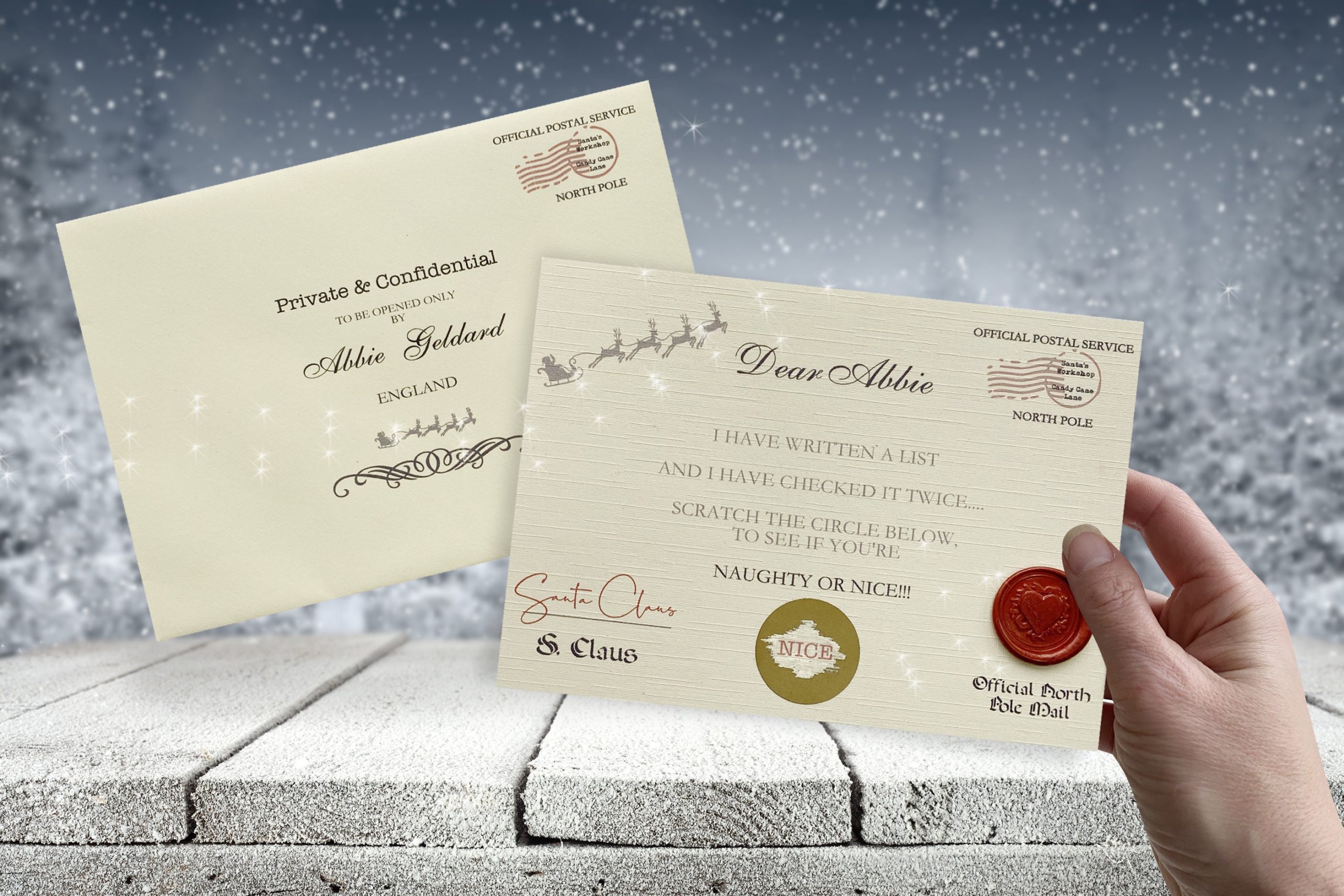 The personalised Santa Scratch Card is already sealed in the cream envelope with the wax seal.