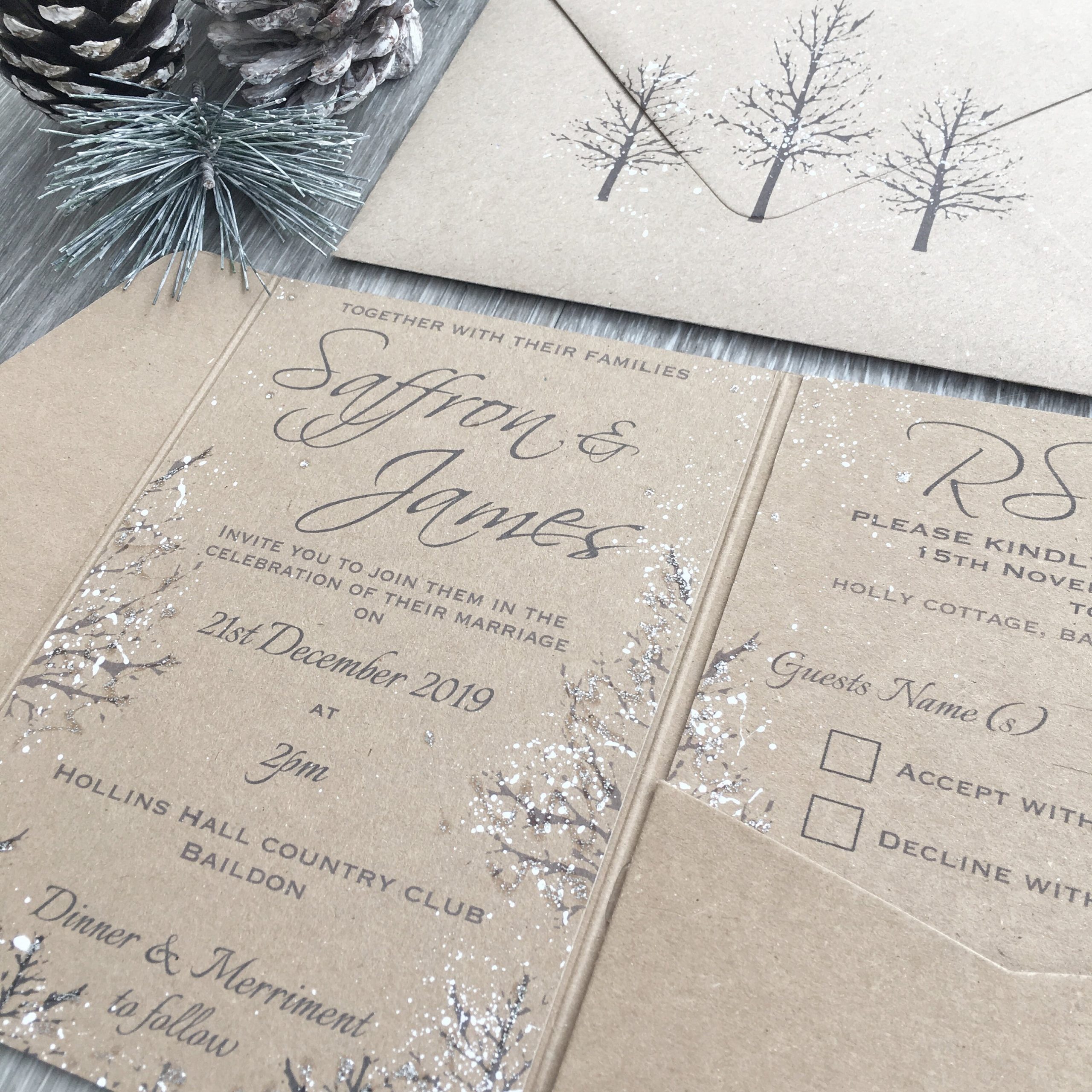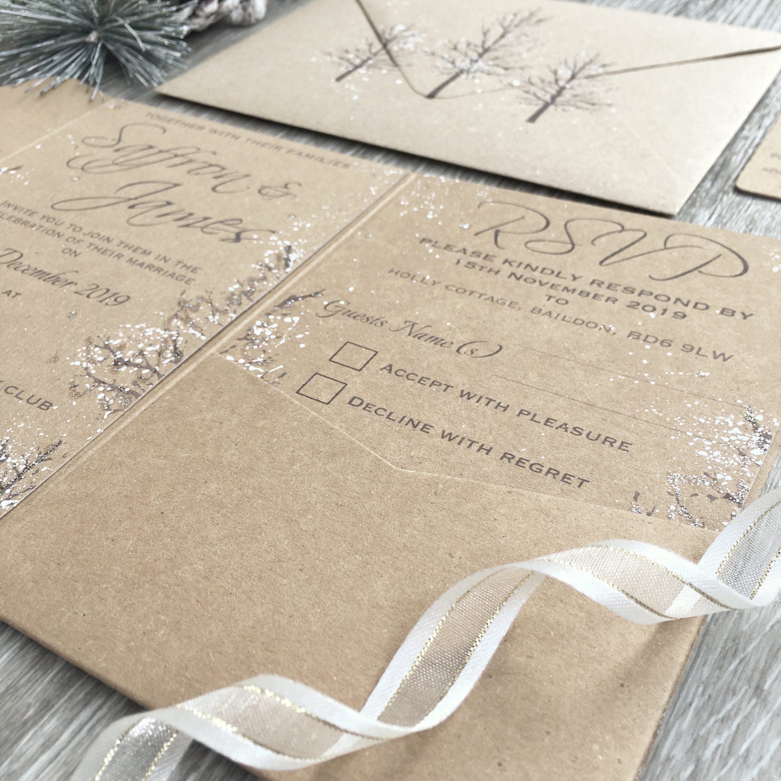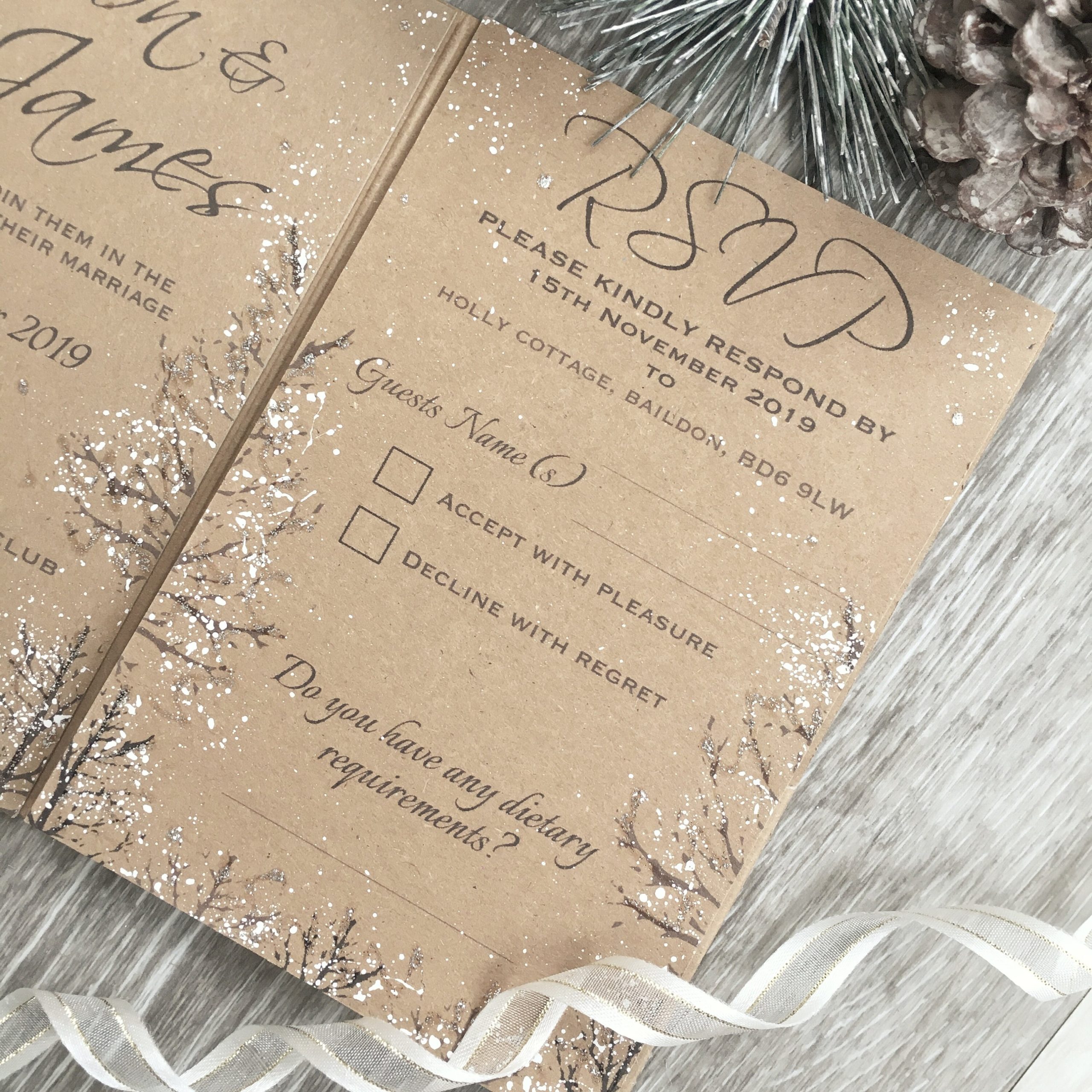 ◆ Hand Painted with ‘snow’ effect on Invitations, RSVP and envelope