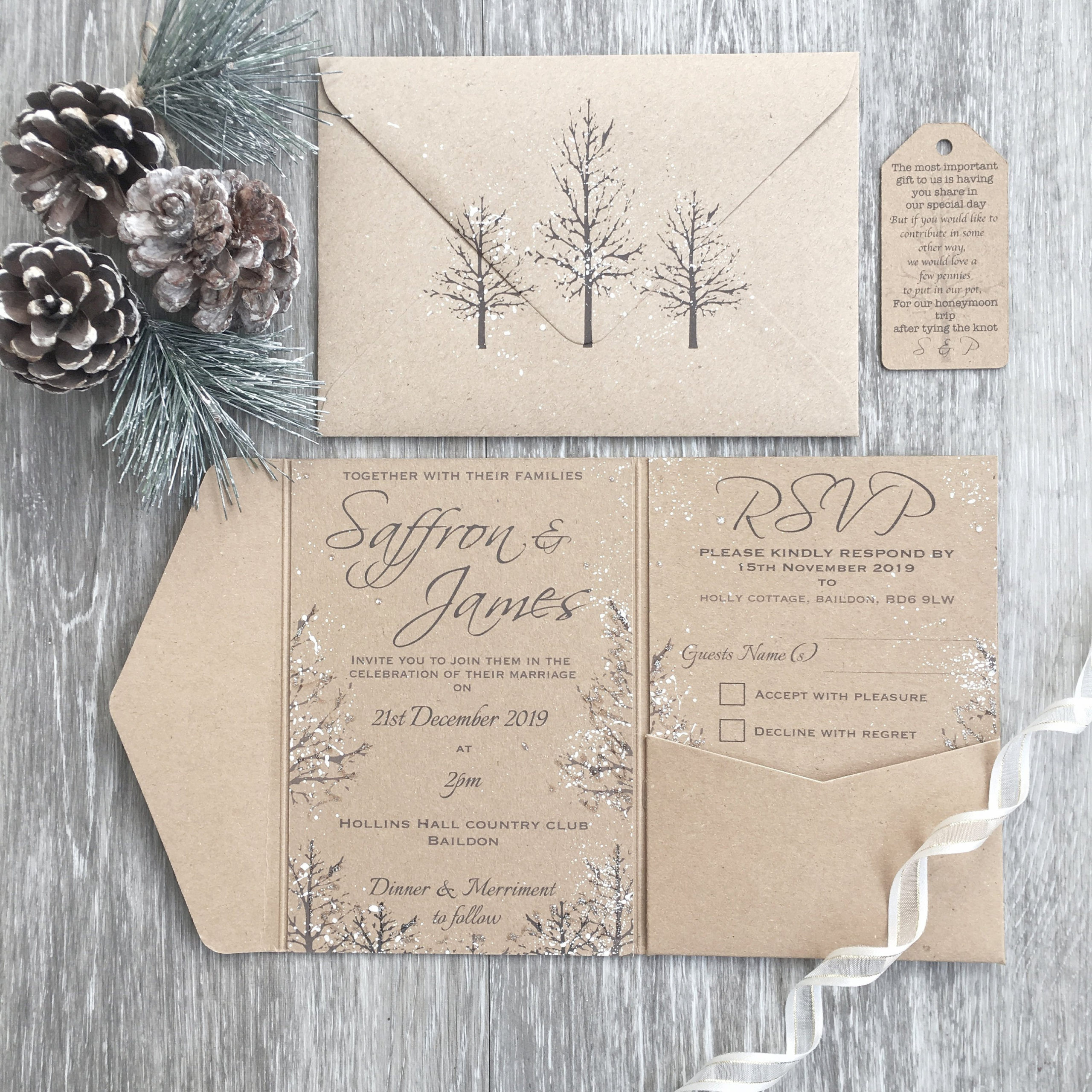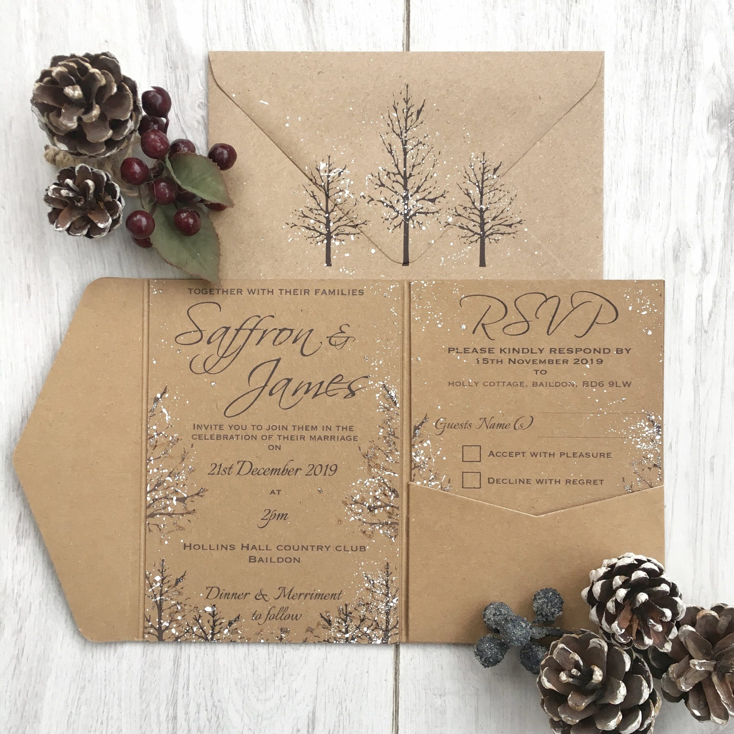 SINGLE SAMPLE ONLY – Rustic Winter Wedding Pocket-fold Invitation, Rustic Wedding, Winter Wedding, Christmas Wedding Invitation, Rustic
