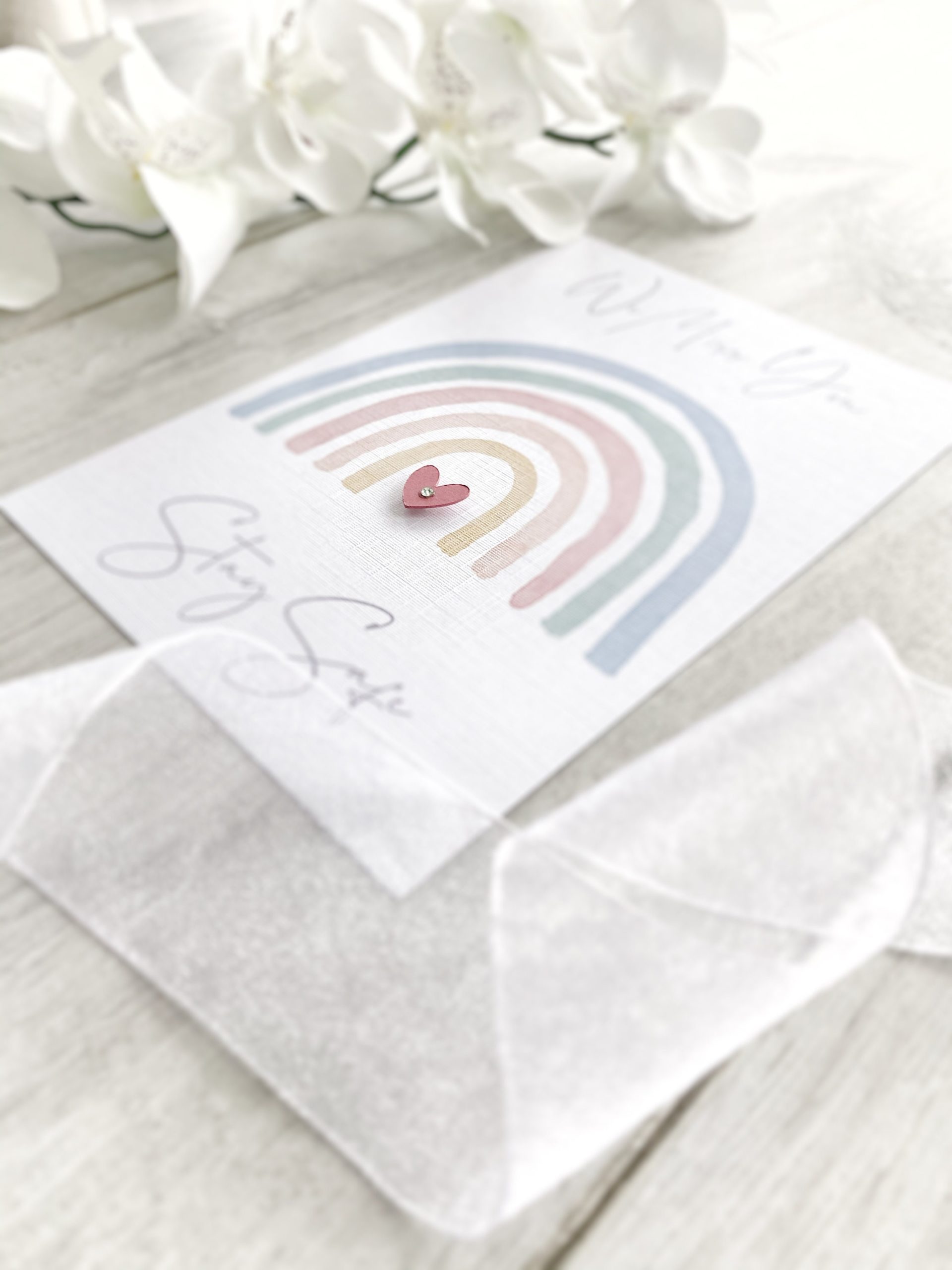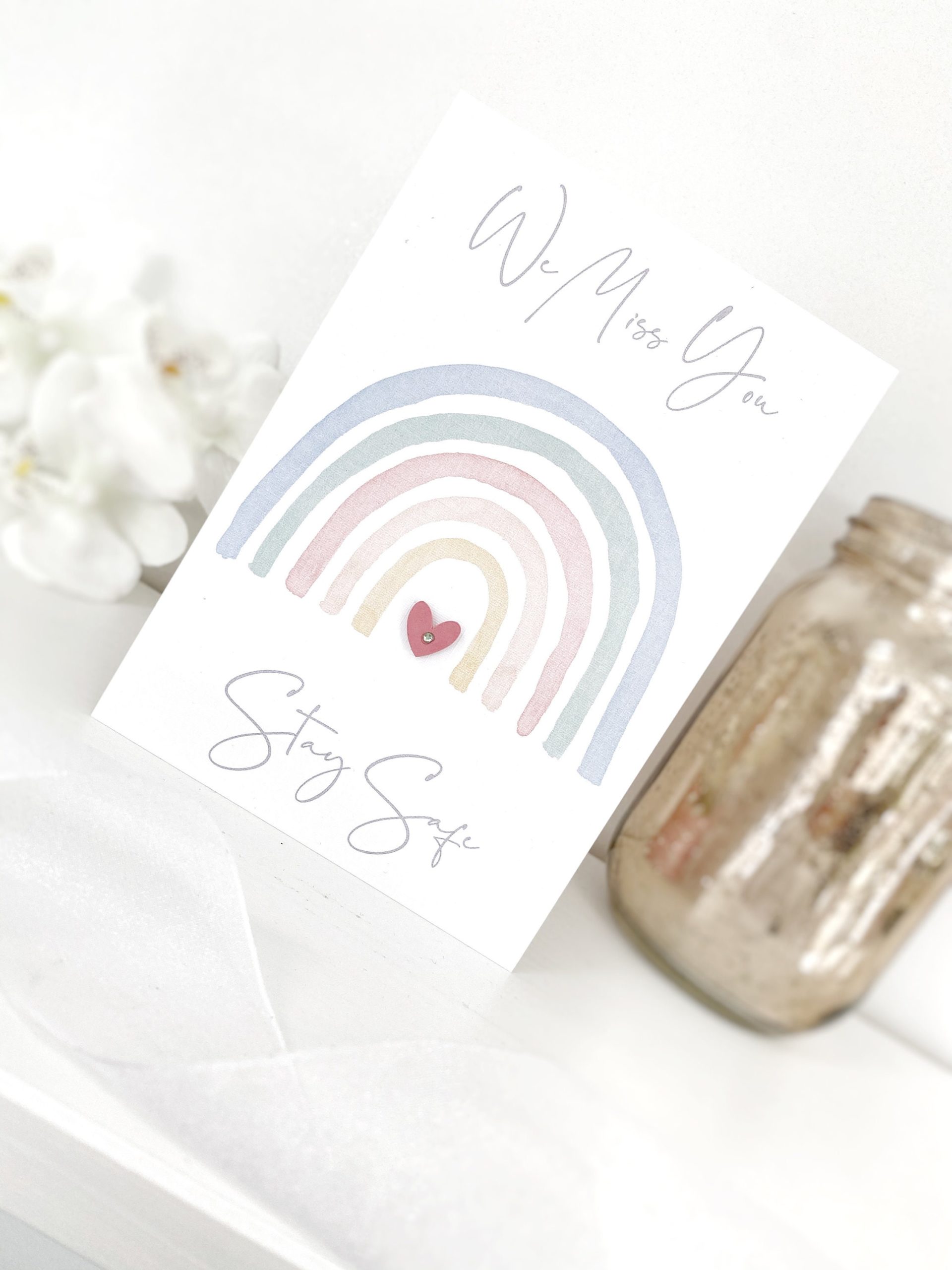 ◆ Embellished with colour coordinating card heart on a raised foam pad with a tiny gem on the heart