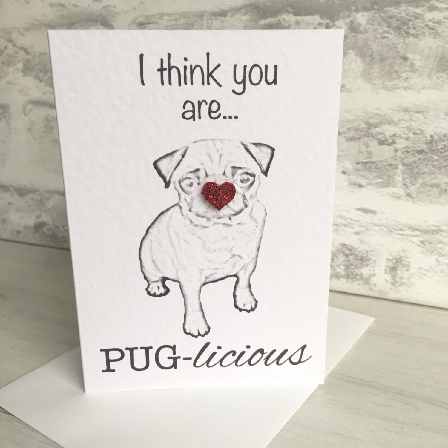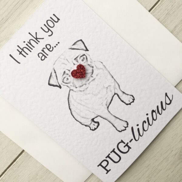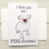 A funny twist on the on-trend Pug Cards with our Pug-Licious Card
